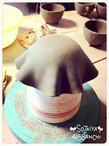 あとは、持ち手を付けた後しばらく置き、全体が少し乾いて硬くなってきた所に