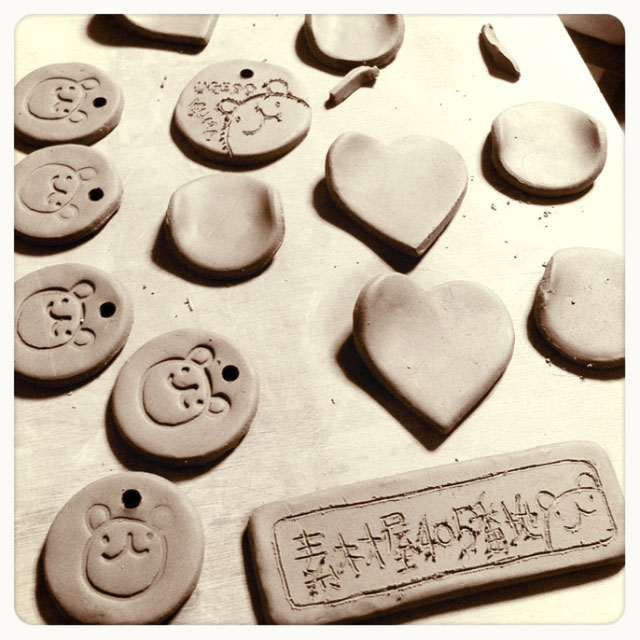 陶印が間に合わなかったので、消しゴムはんこで代用しました。