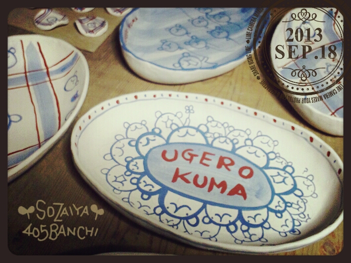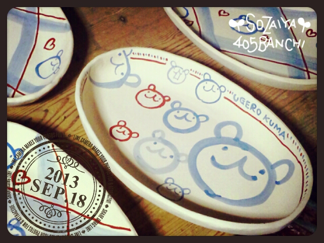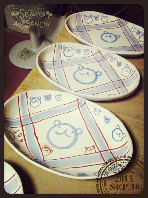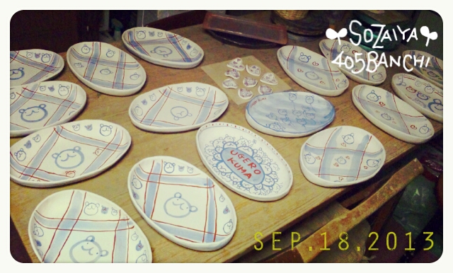 今回は、素焼きしたものに絵付けして釉薬をかける作業です。