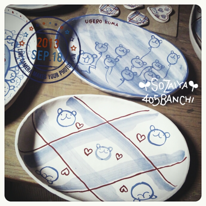残りのお皿は、呉須と弁柄で絵付けし、最後に透明釉をかけます。
