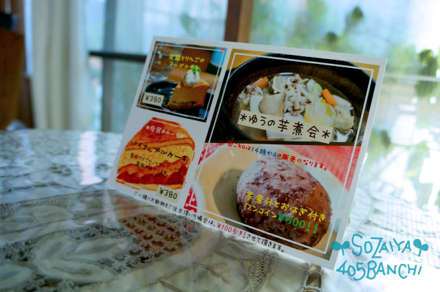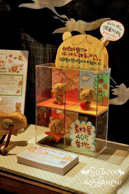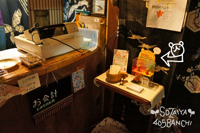 夏代さんの提案で、個展の宣伝スペースをレジ横に設置!