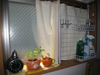( ・∀・)キッチンの窓用のカーテン作りました。
