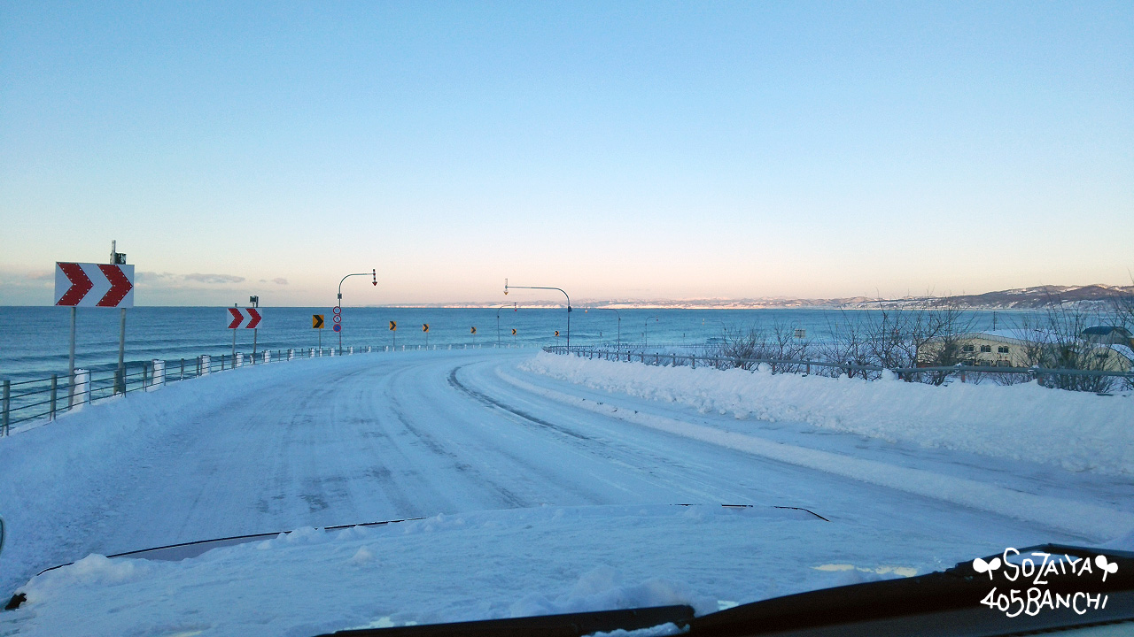冬の間は、だいたいいつも道路の車線が雪で消えますwww