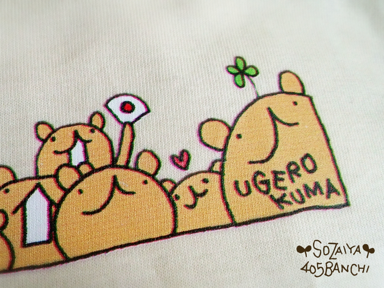 『カラフルウゲロくま』という柄については、白い縁取りをしています。