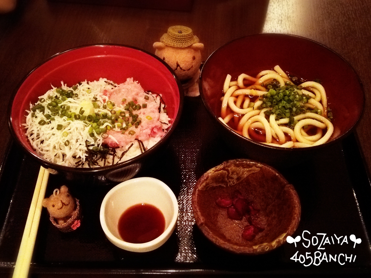 しらす・ネギトロ丼!と、うどんのセット。んまーーい!!