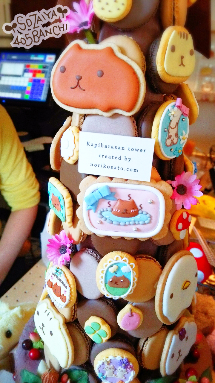 レジの横には、アイシングクッキーやマカロンで作られたタワーが♪