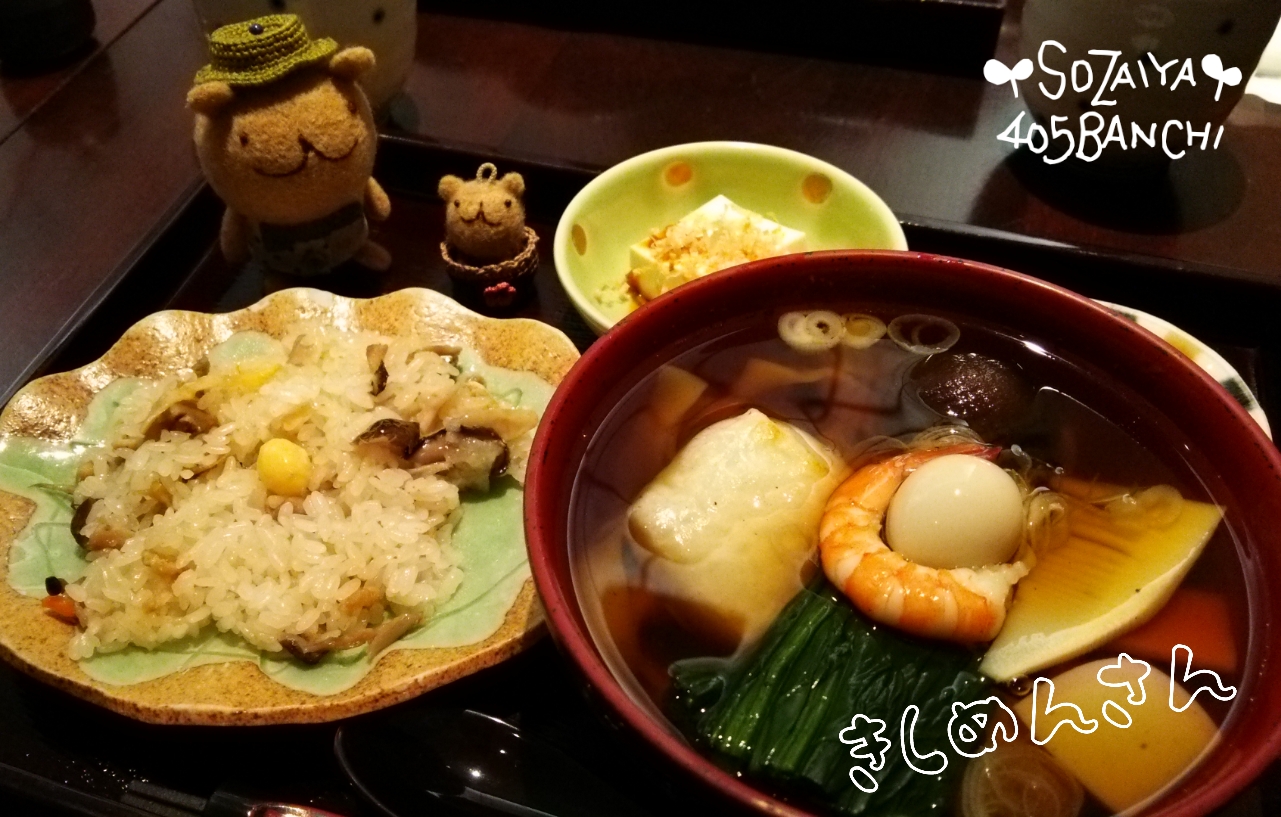 追分だんご本舗のおこわ御膳。きしめんがセット♡