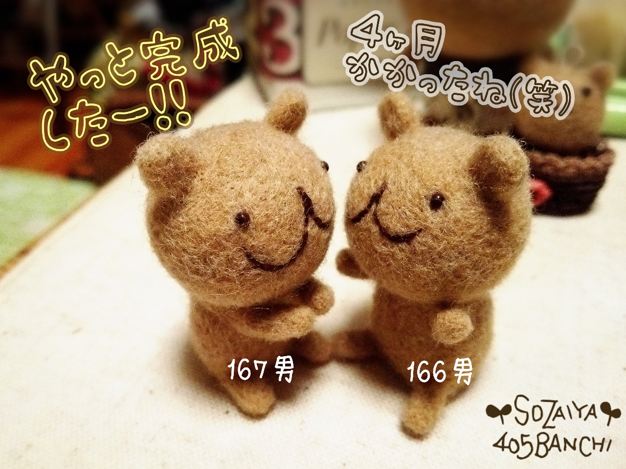 完成したのは、羊毛ウゲロくま167匹目、167男です。