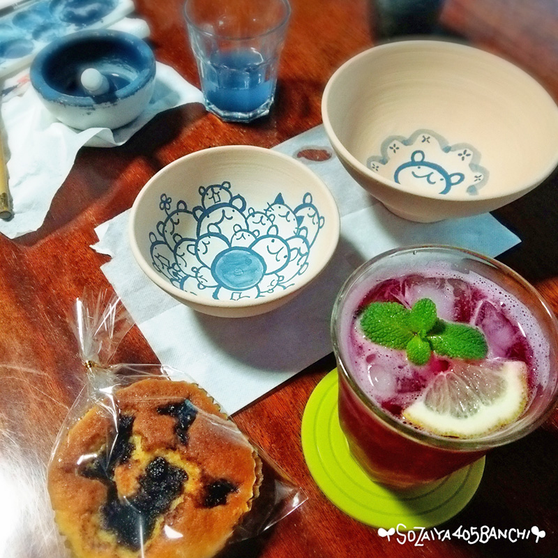 ブルーベリーのケーキとシソジュース♡