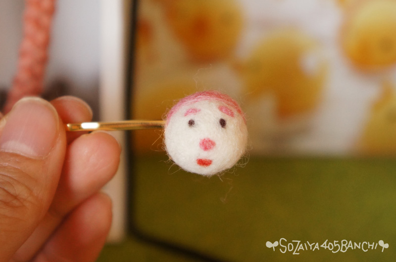 三つ編み女の子のブローチと、お顔のキーホルダー、そしてヘアピン!