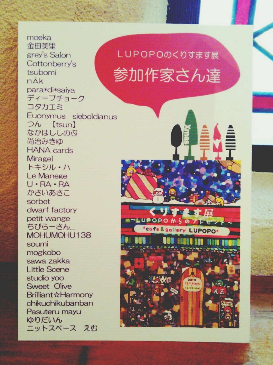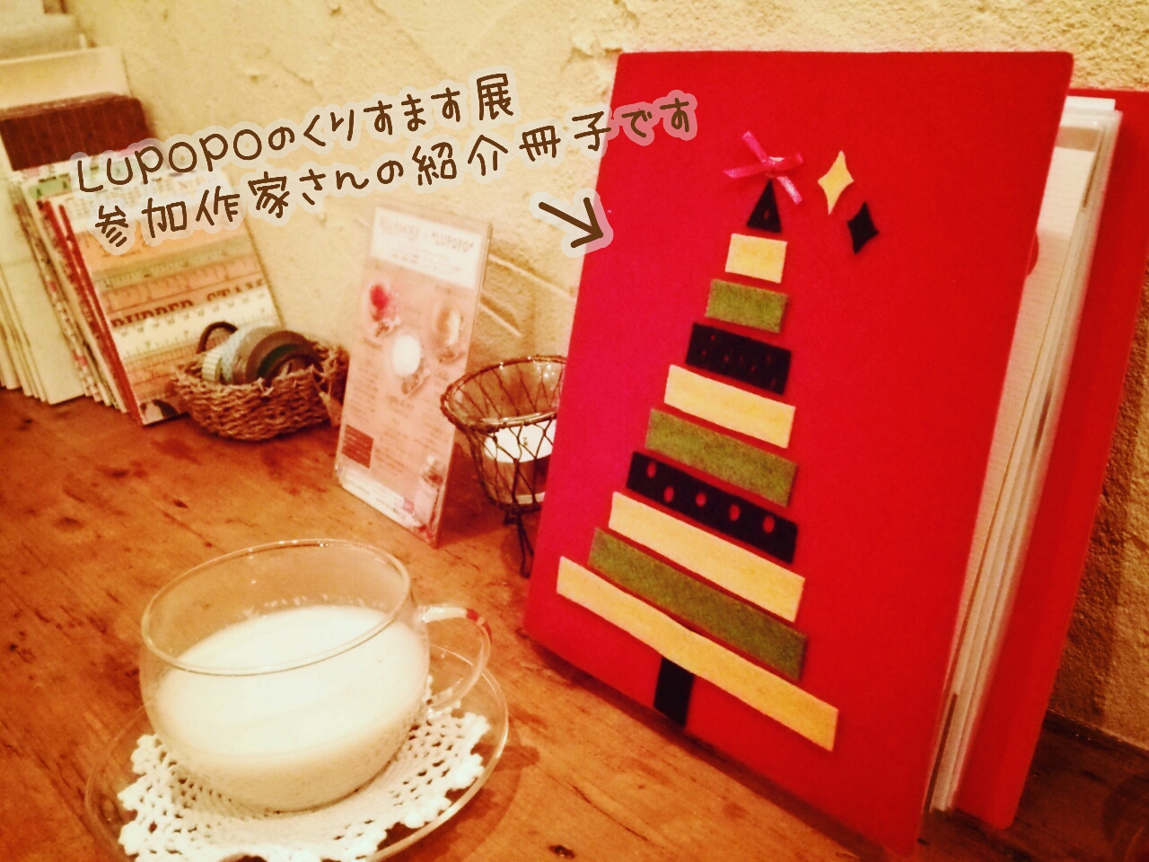 くりすます展*カフェ用水飲みグラスカフェでまったり*くりすます展カウンター席には、今回参加した作家さんの紹介冊子がおいてありました。