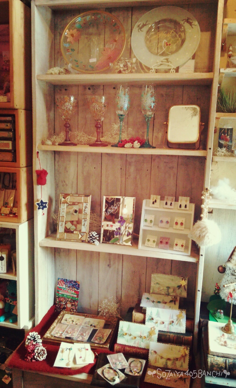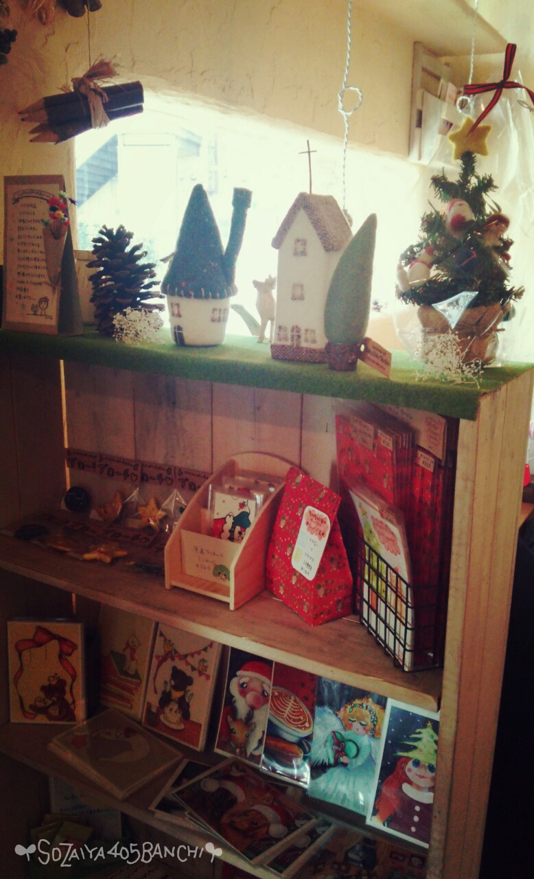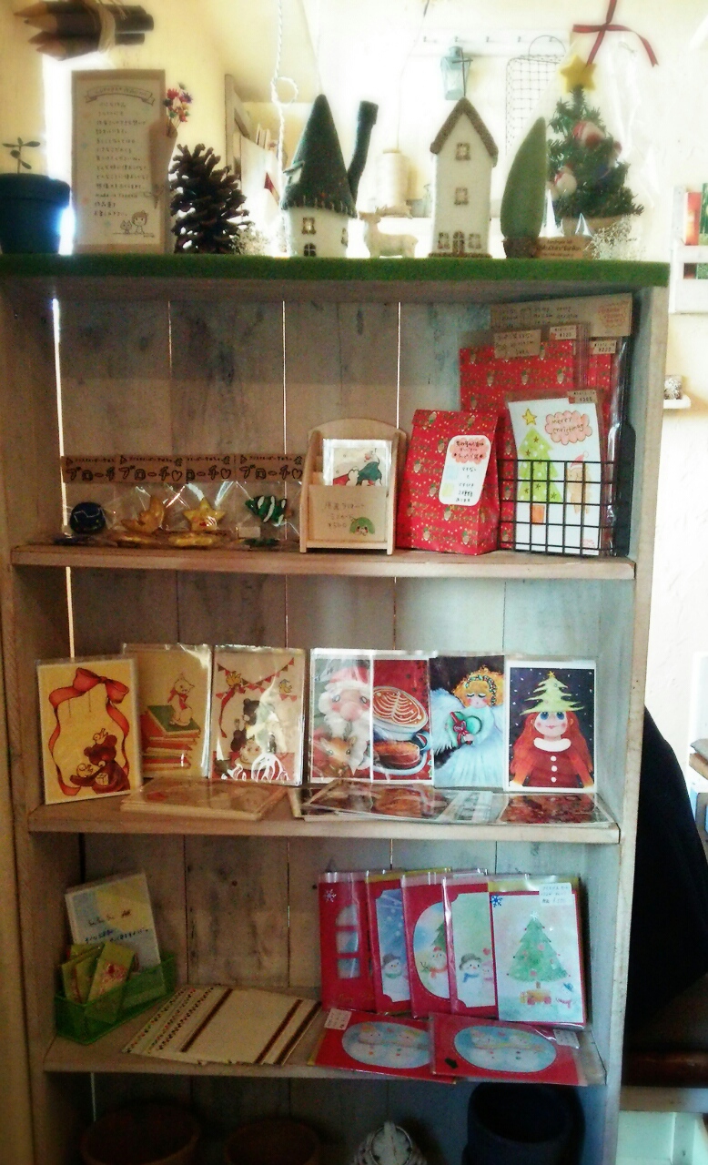 ポストカードなどのペーパーアイテムは、入り口の左手にある棚に^^*