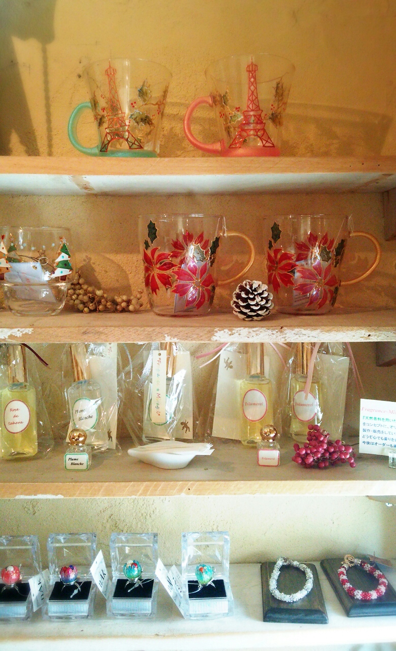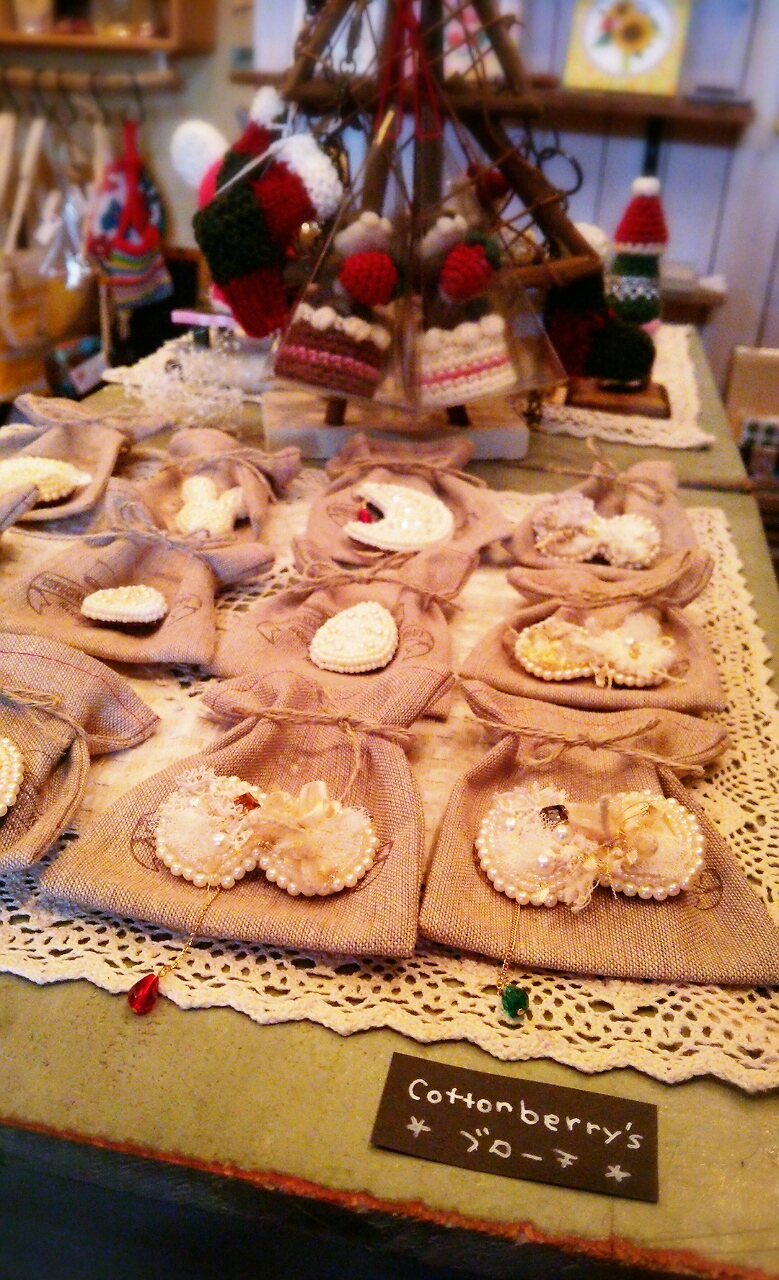 カフェスペース・カウンター席には作家さん手作りのオーナメントも飾ってありました。