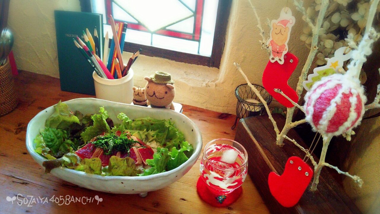落ち着いた色味だけど、布の柄はちゃんとクリスマスの赤と緑を意識した色の組み合わせになっています♡