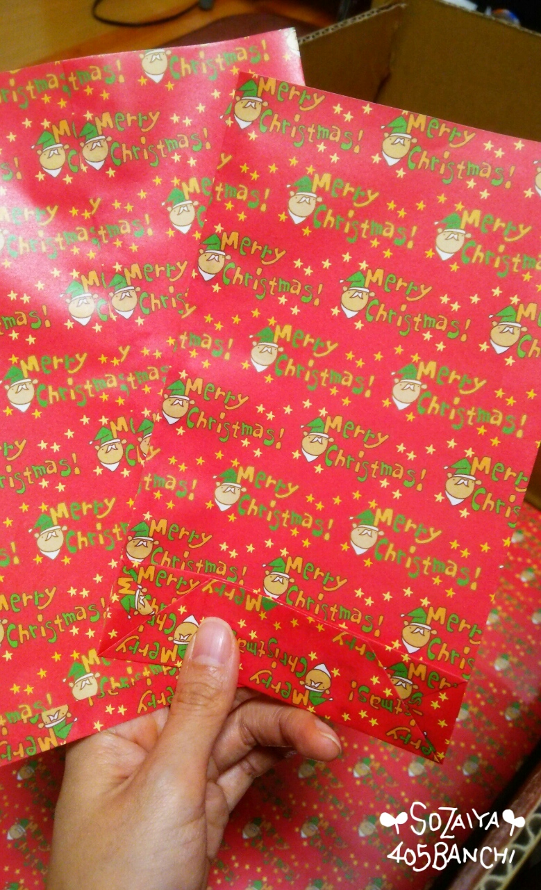 今回、ウゲロくまのサンタ柄包装紙で作った