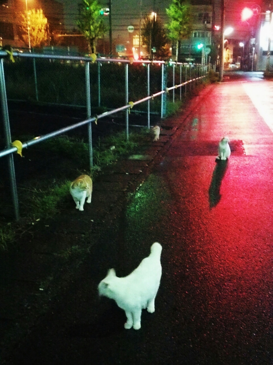 夜中、歩いて帰ってたら、腹ペコのにゃんこさんたちが着いて来ちゃった日。
