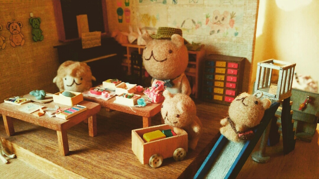 kazumiさんが10年ほど前に作ったという、幼稚園のドールハウスで遊んでおりましたw